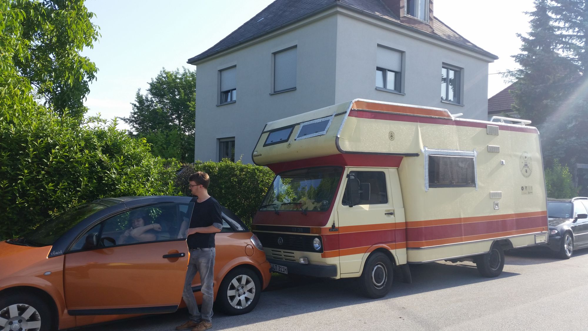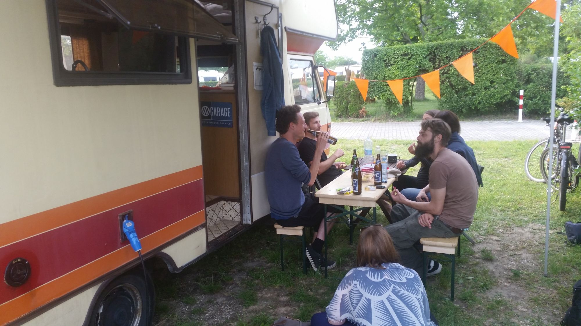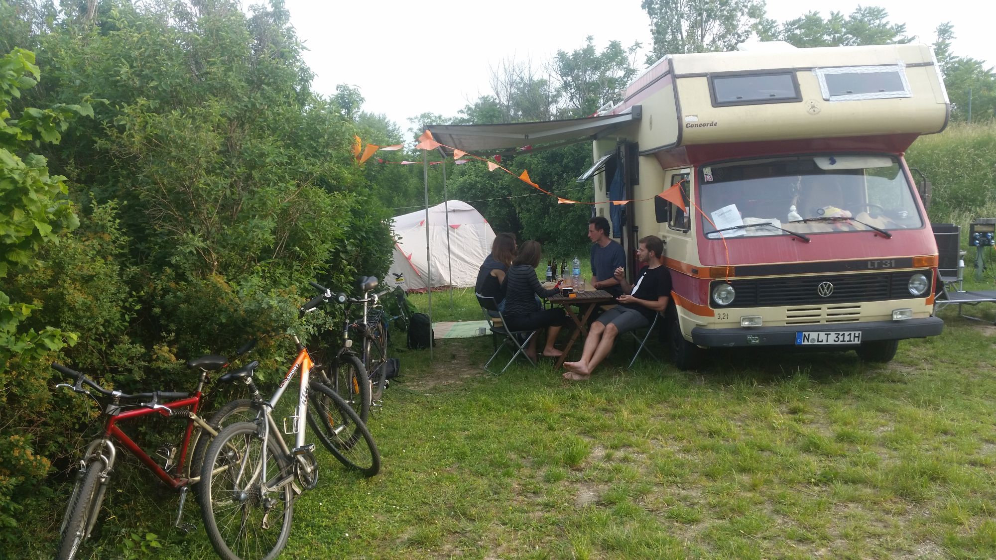 Von St. Pölten geht’s weiter nach Wien. Die Navigation übernimmt wie immer meine freundliche Frau Susi. Wir nisten uns auf dem Campingplatz Neue Donau (Link) ein. Der passt irgendwie zum Mutterschiff, alt und etwas verkommen aber äußerst charmant. Erinnerungen an Berlin (Link). Womöglich stammen sie beide aus derselben Zeit, 1985. Am Nachmittag treffen wir Freunde aus meiner Jugend und meine Schwester, Menschen die ich nun seit über 20 Jahren kenne. Wir picknicken, erzählen uns Geschichten aus unserer Jugend, von Festivalbesuchen und verrückten Saufaktionen, der ersten Liebe und Geschwisterstreit. Schüler die eine teuflische Freude haben sich während der Mathestunde gemeinsam mit ihrem Stuhl nach hinten kippen zu lassen und laut am Boden aufzuschlagen. Verärgerte Kinder, die nach einem Geschwisterstreit die Kassetten ihres Bruders mit Butter und Käse bestreichen, um sie zu verspeisen. Über Musikgeschmack lässt sich nun mal streiten. Das Bier fließt.