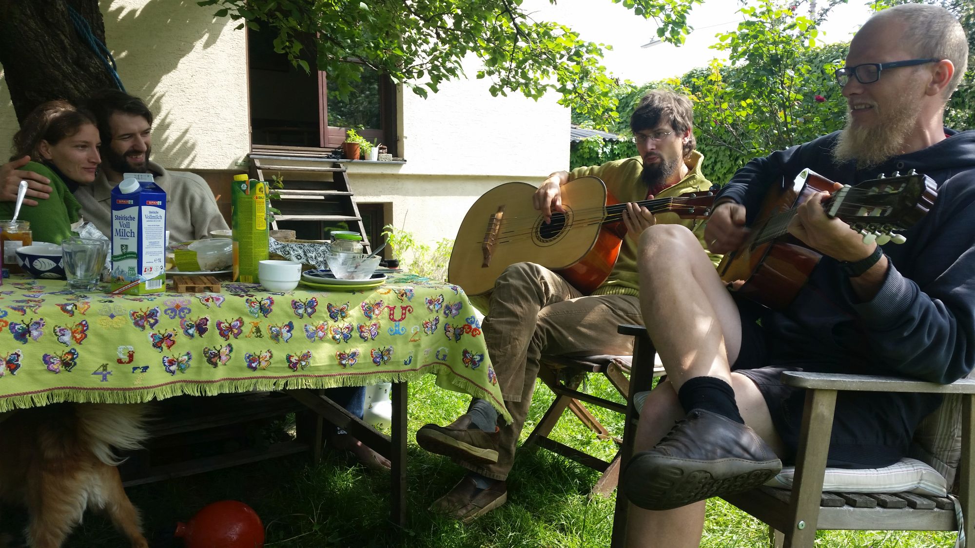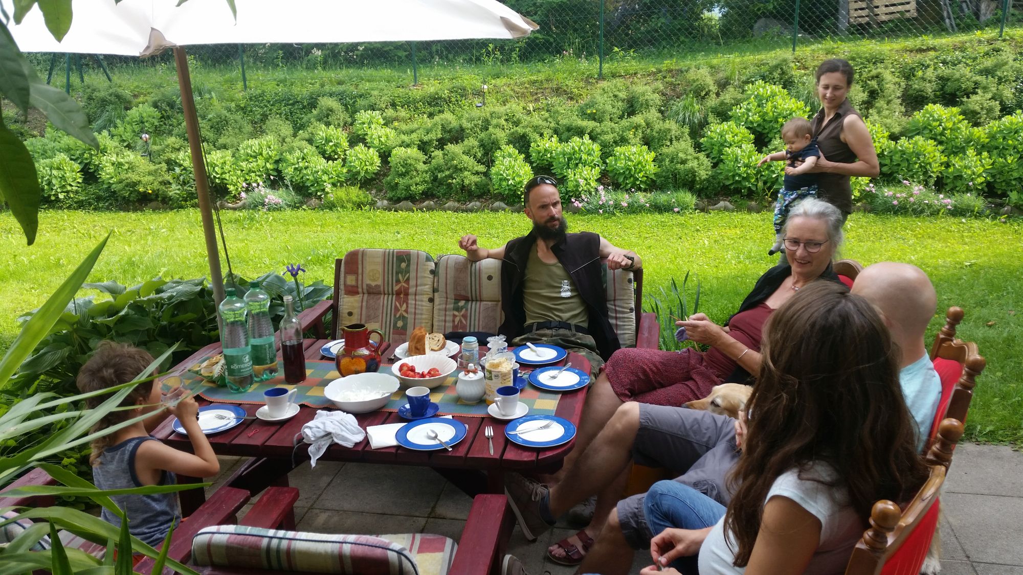 Montag, 28.05. Die zweite Woche neigt sich dem Ende zu. Wir grillen und ich treffe Marcel Dorfer meinen frühesten Schwertkampfkontakt und jetzigen Leiter von INDES Klagenfurt. Mit ihm entschlossen wir uns 2002 dem Schwertkampf zu widmen. Er leitete die ersten Trainings und wir gaben gemeinsam Schaukampfauftritte. Ich lernte damals sehr viel von ihm, besonders seine Entschlossenheit Dinge anzupacken und nicht lange zu hadern hat mich bis zum heutigen Tag begleitet. Auch sein Bruder Manuel Dorfer, der uns Anfangs im Schwertkampf begleitete, sich aber später entschloss seine Energie in sein Projekt Tennishelden zu konzentrieren, kommt Abends zu Besuch. Wir haben spannende Gespräche über unsere Ziele als Trainer und ich bin immer wieder erstaunt, wie ähnlich unsere Motivationen, Hürden, Herangehensweisen sind. Ich nehme mir viel aus dem Gespräch mit. Eine kurz vor ihrem Ziel abgestürzte Torte von meinem Herzensfreund Fridl und sein etwas über ein Jahr alter und bestens gelaunter Sohn Milan bringt uns alle zum Lachen. Der Tag endet spät Nachts im Gespräch mit meinen Geschwistern. Ich schlafe ein mit einem Gefühl der Dankbarkeit für unsere reflektierte und kritische Art zu denken gepaart mit einer guten Portion Handelsbereitschaft.