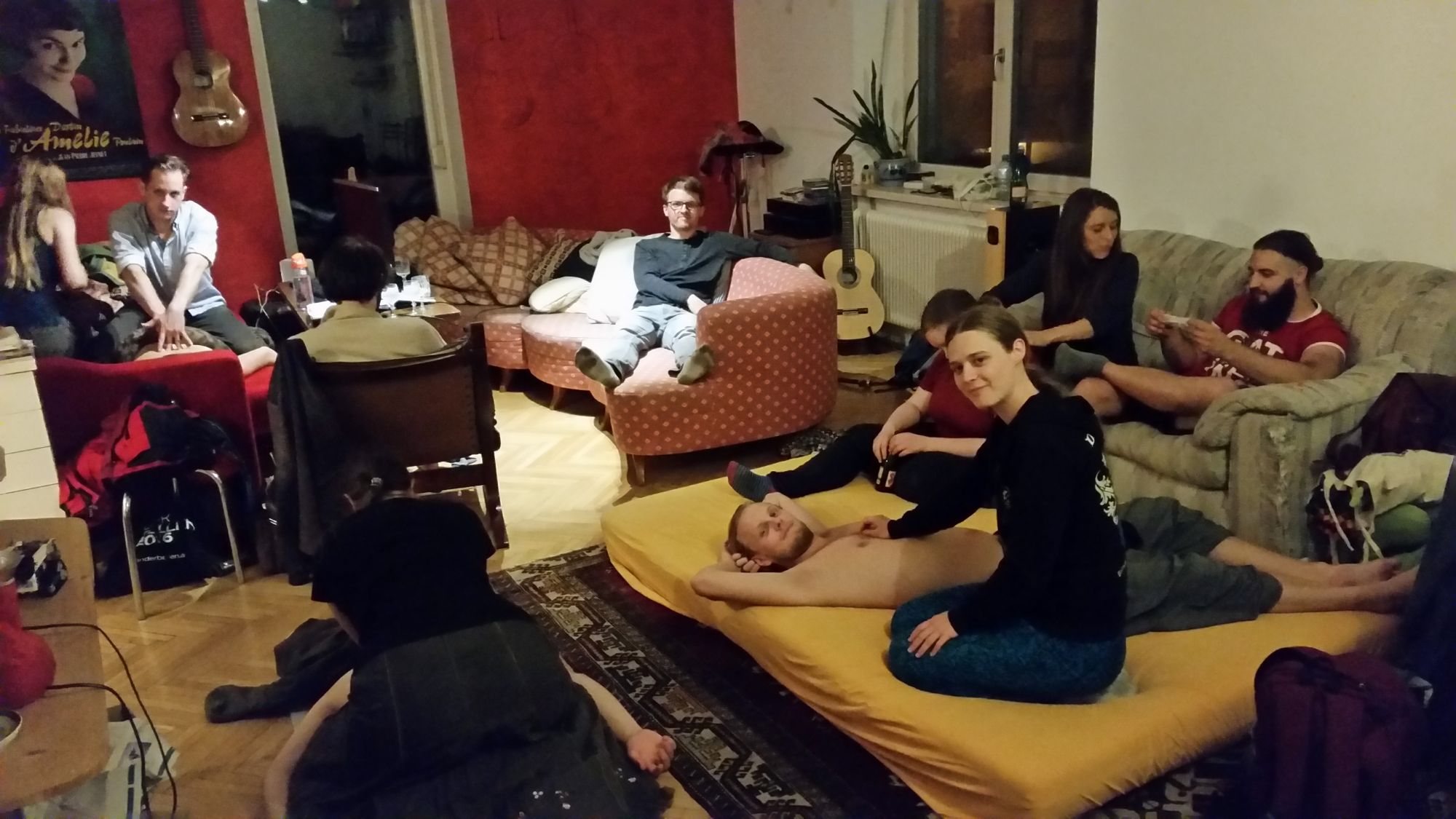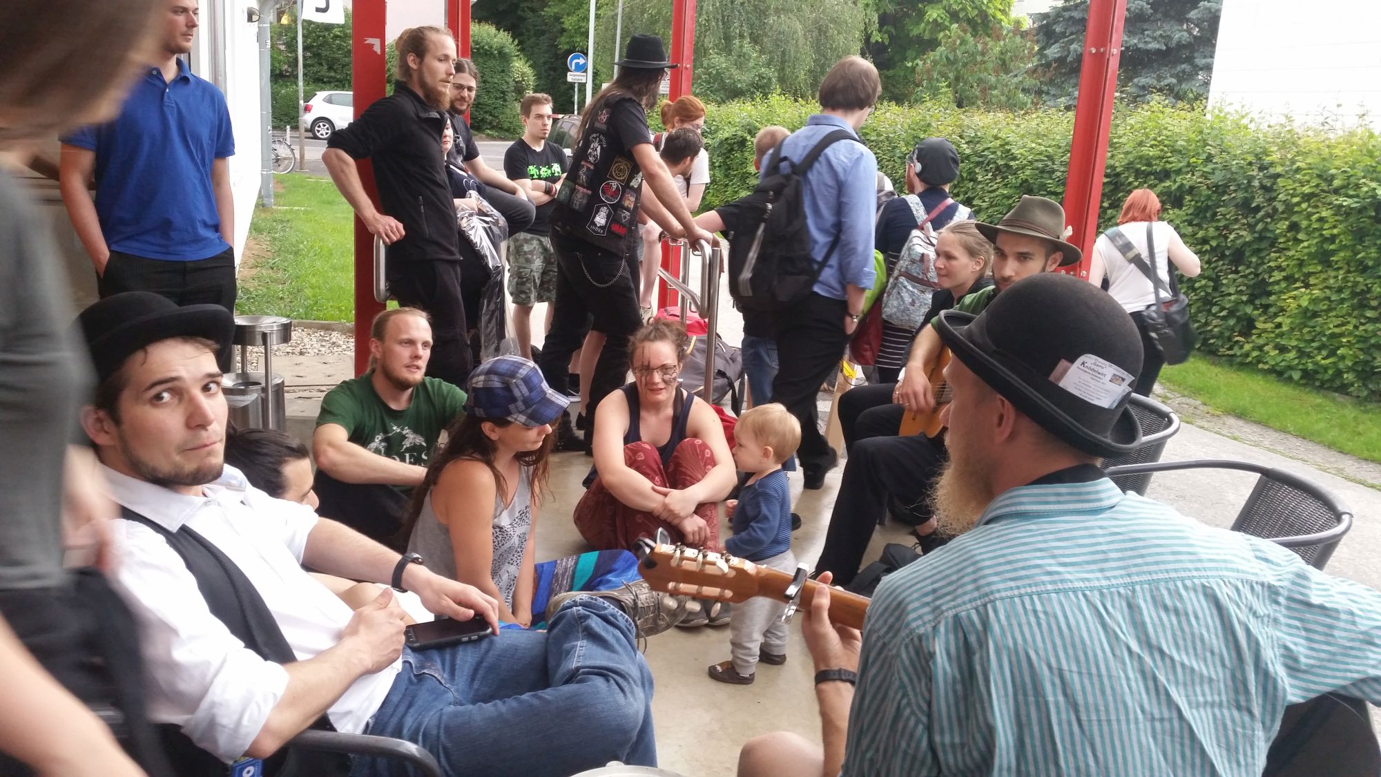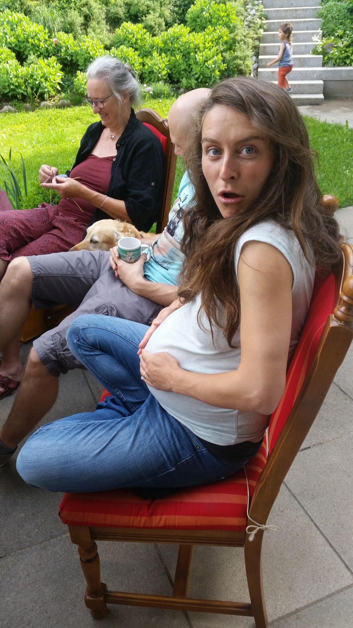 Nach dem Gesang tuckern wir weiter nach Graz und übernachten bei einem Systema-Kampfkunstfreund von uns. Spätnachts ankommen, übernachten und dann Jamsession mit Gitarre und Akustischem Bass inklusive Frühstück im Garten und Hundeakrobatik. Danach ab zum Frauenarzt, Standard-untersuchung. Alles super in Ordnung. Mittlerweile hat unser Zwergi nach Messungen des Arztes 2125 Gramm. Blick auf das Röntgenbild zeigt Daumen bzw. Hand im Mund, dann muss alles in Ordnung sein, denk ich mir.