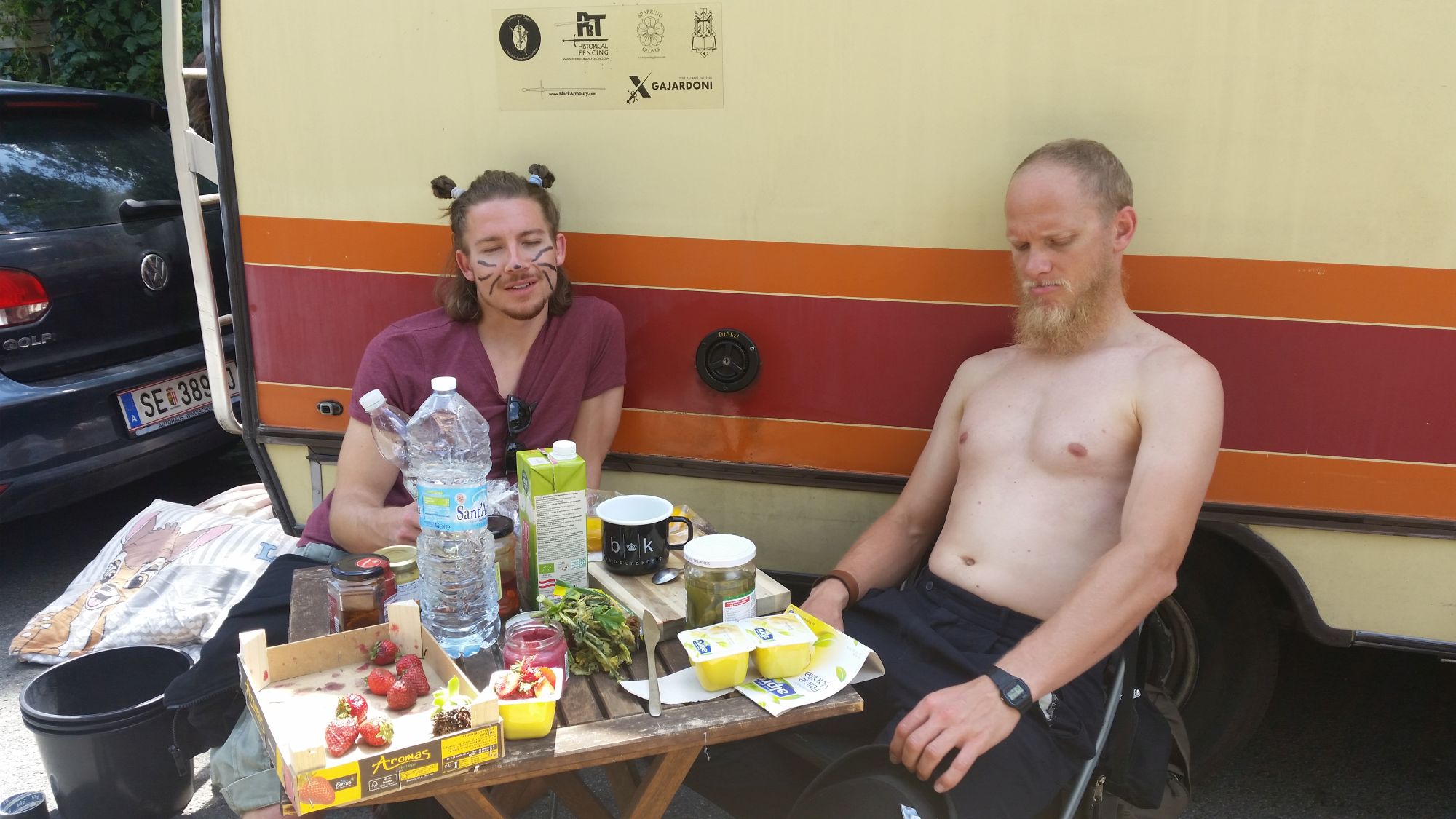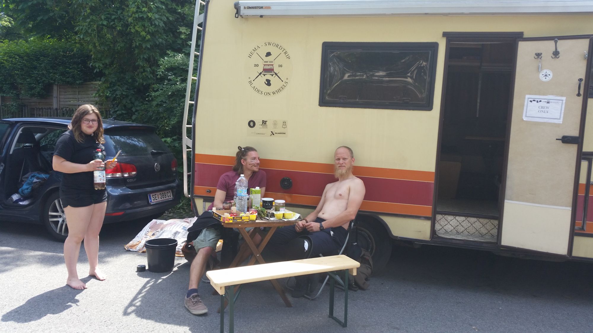 Am Nachmittag Picknick und Frisbee im Stadtpark Graz. Das Wohnmobil steht am Platz der Versöhnung direkt vor der Bundespolizeidirektion. Alte Freunde, Familie, und ein Mitglied der Soldknechte. Was für eine Zeit das war, als wir noch als Schaukampftruppe von Mittelaltermarkt zu Mittelaltermarkt getingelt sind. Schön, dass jetzt auch wenn wir nicht mehr dieses Hobby ausleben, unsere Freundschaft hält und wir über aktuelle Themen wie Ausbildung, Beruf, Gesundheit und Familie reden können. Auch mit am Start und beim Frisbee werfen, zwei Freunde aus der Festival Zeit. Wir reden über Festival Golf und die Kunst sich gegenseitig ins Gesicht zu schlagen. Heute haben sie eine Firma die Leuten hilft günstigen Strom zu beziehen. Also: Wenn ihr drüber nachgedacht habt euren Stromanbieter zu wechseln, wendet euch an Energo.