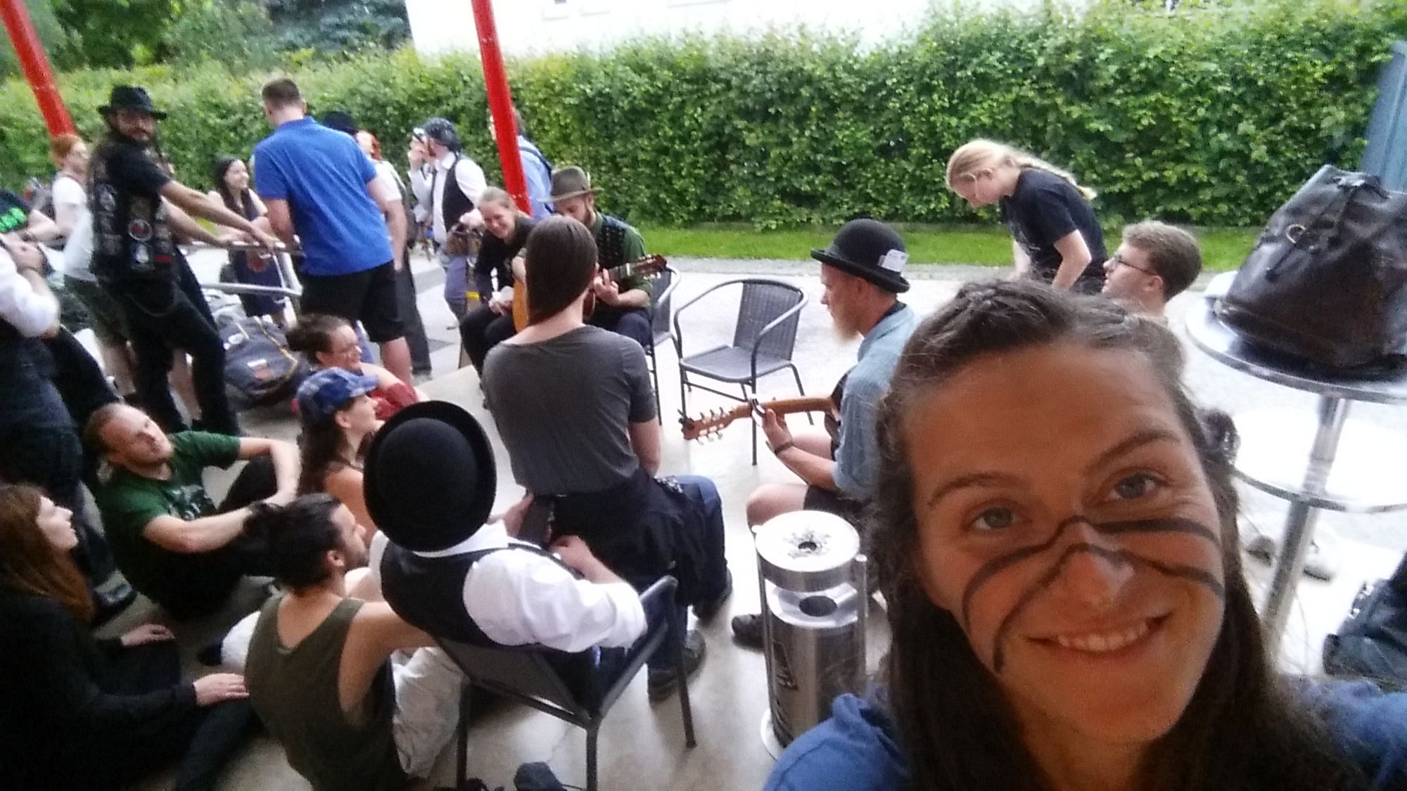 Am Nachmittag geht’s weiter zum Singnachmittag mit Harry Winter ehemaligem Mitglied von Dreynschlag. Er hat mein Trainerdasein in frühen Jahren unterstützt und mir die Möglichkeit gegeben mich am Dreynevent als Trainer vor internationalem Publikum zu versuchen. Motto des Singabends: „Keiner kann aber jeder muss!“ Nachdem die beiden mit Stücken wie Les Miserables – Stars und Les Miserables – Empty Chairs at Empty Tables und Tanz der Vampire – Die unstillbare Gier starten und es mir bei ihren Performances vor lauter Ergriffenheit die Haare aufstellt, merke ich, dass sie sehr wohl können und wir müssen. Ein wenig Zwang ist manchmal nicht verkehrt und wir geben unser Bestes.