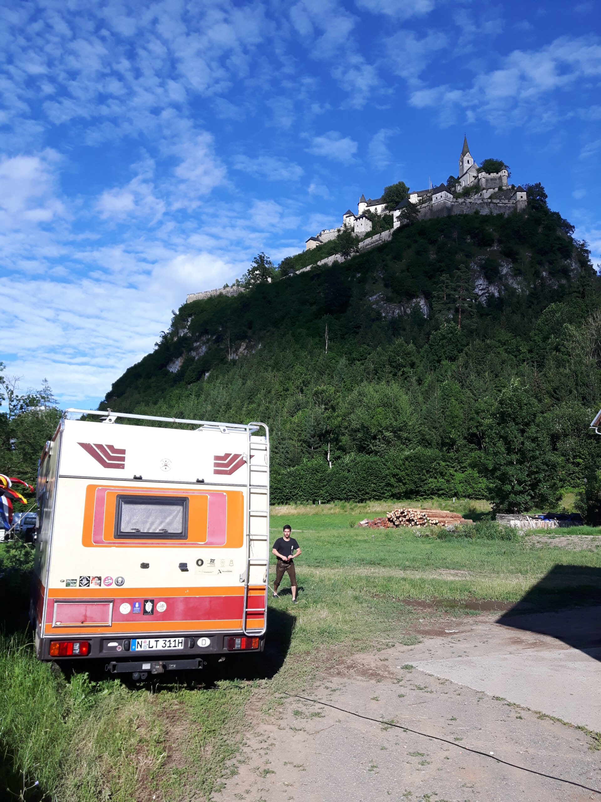 Sind eben an der Burg Hochosterwitz angekommen. Der einzige Stopp für vier Tage. Fridl von INDES Graz heiratet hier am Samstag anlässlich der Schlacht an der Drau seine Vroni – und wir sind als Swordtrip-Crew mit von der Partie. Da draußen gibts nur geniale Ausblicke, aber kein Netz. Doch ein paar Impressionen wollten wir schon mal mit Euch teilen. Deswgen haben wir spontan die Wohnung von Ingulfs Bruder Gandulf (ja, das ist der Homepage-Wizard!) in Klagenfurt besetzt, um noch ein wenig Material hochzupumpen (siehe Internetcafe Graz…). Morgen wird die Burg erstürmt und dann geheiratet und dazwischen bestmmt das ein oder andere Bier getrunken… Wir freuen uns total, dabei sein zu können!!!