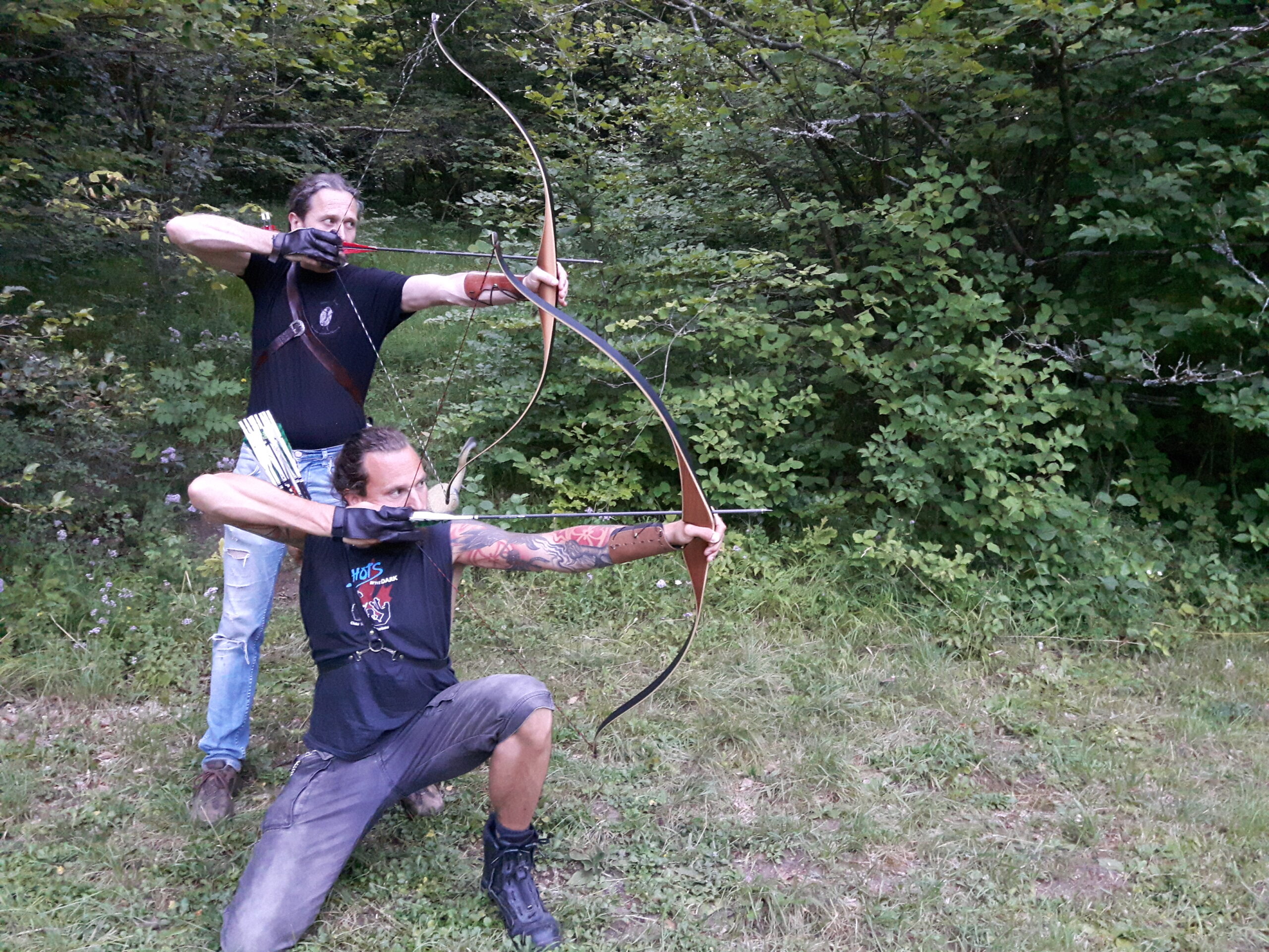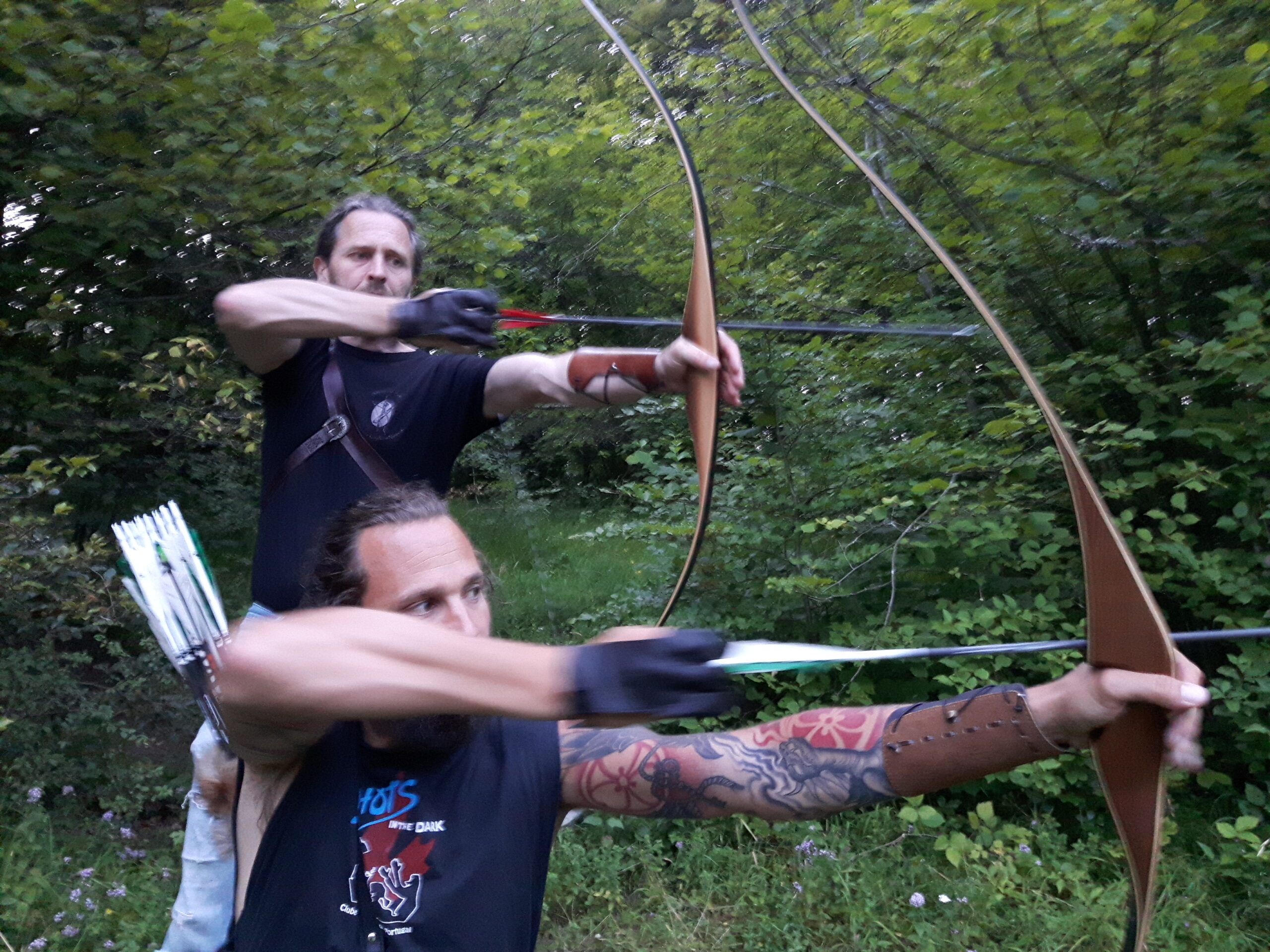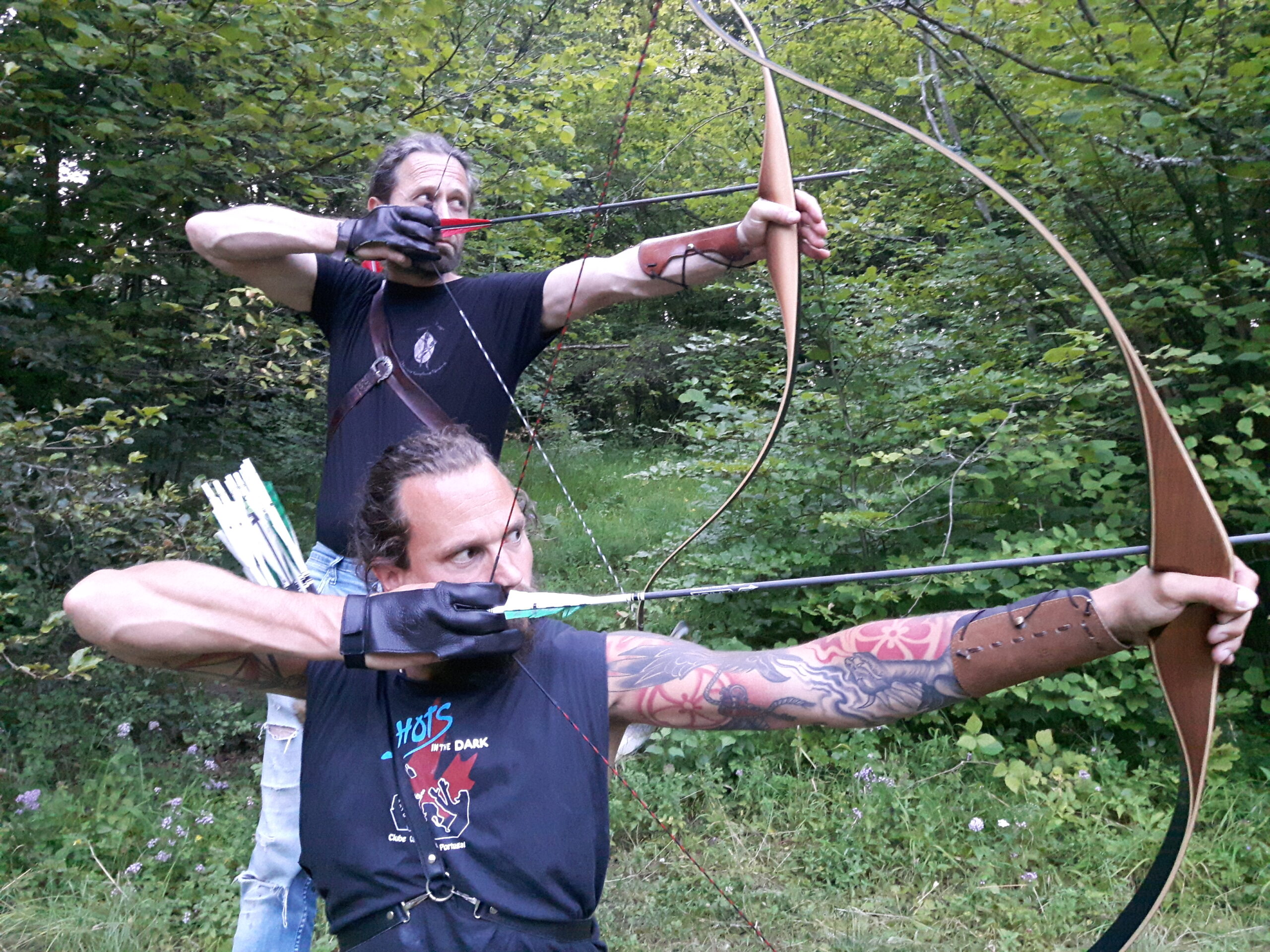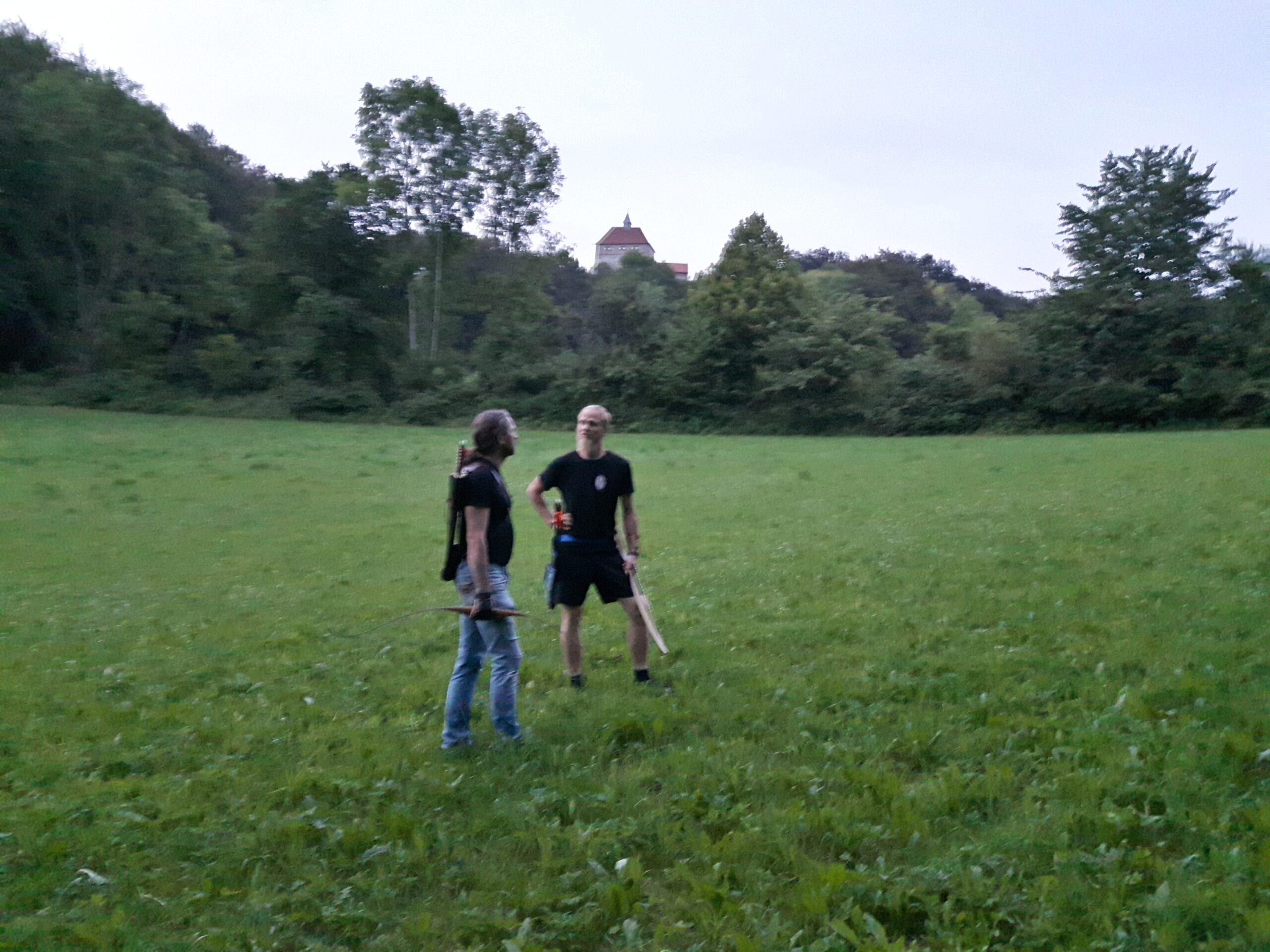 Nach vier Wochen Nonstop Schwertfechten muss man einfach mal was anderes machen… dachten wir uns. Und haben unseren Stopp in Hohenstein spontan auf Freitag abend vorverlegt. Dort im Schatten der mächtigen Halbruine Hohenstein betreibt Linnels Schwertkampftrainer Andreas Fuchs – Inhaber von Schwert und Bogen – einen privaten Trainingsparcours für instinktives Bogenschießen. Dort haben wir in der mystischen Abenddämmerung mit Pfeil und Bogen 3-D-Tiere gejagt. Und nebenbei mit Andreas über seine Passionen Schwertkampf und Bogenschießen gesprochen – und warum BEIDES einen gleichberechtigen Platz in HEMA einnehmen kann.