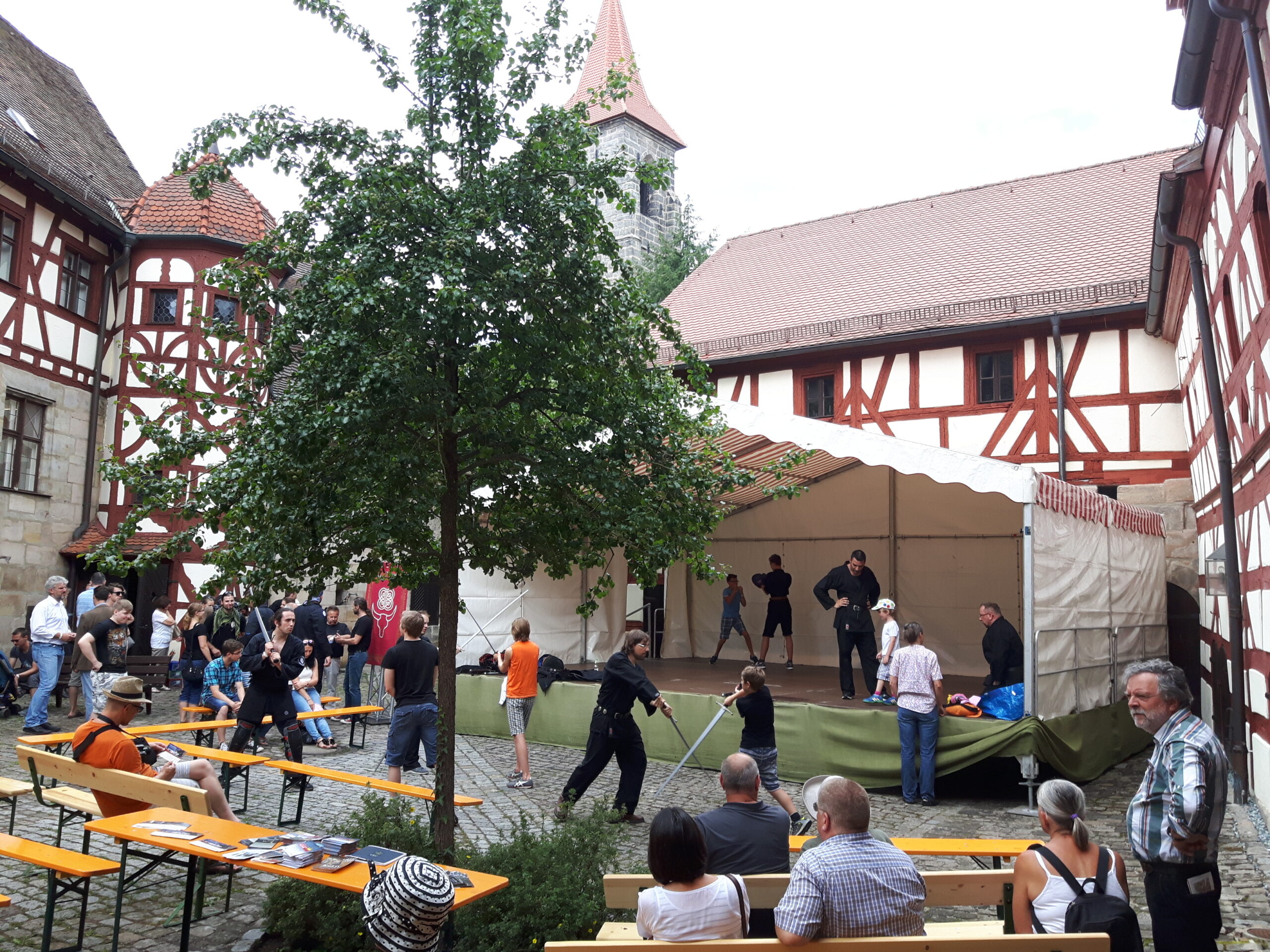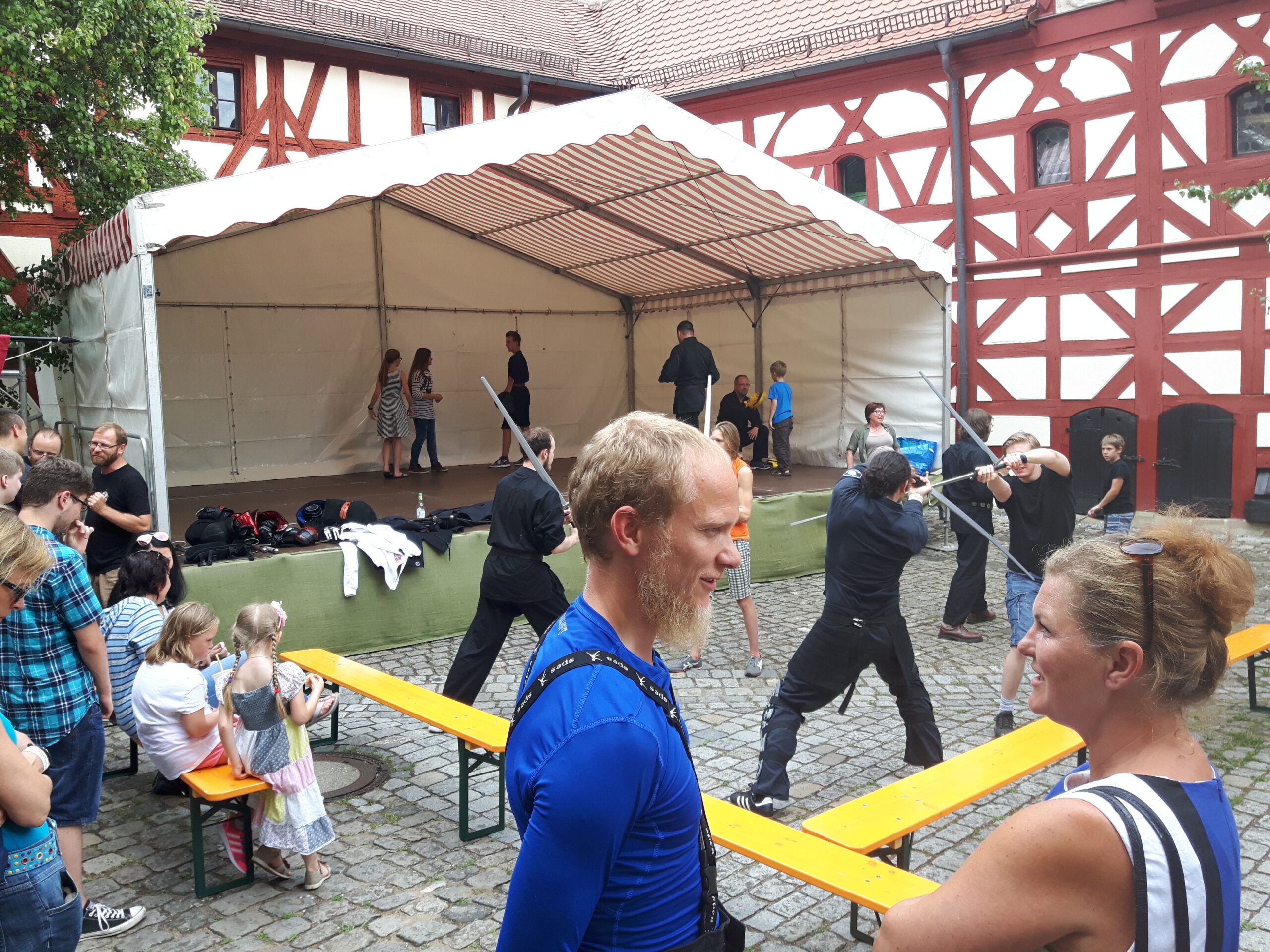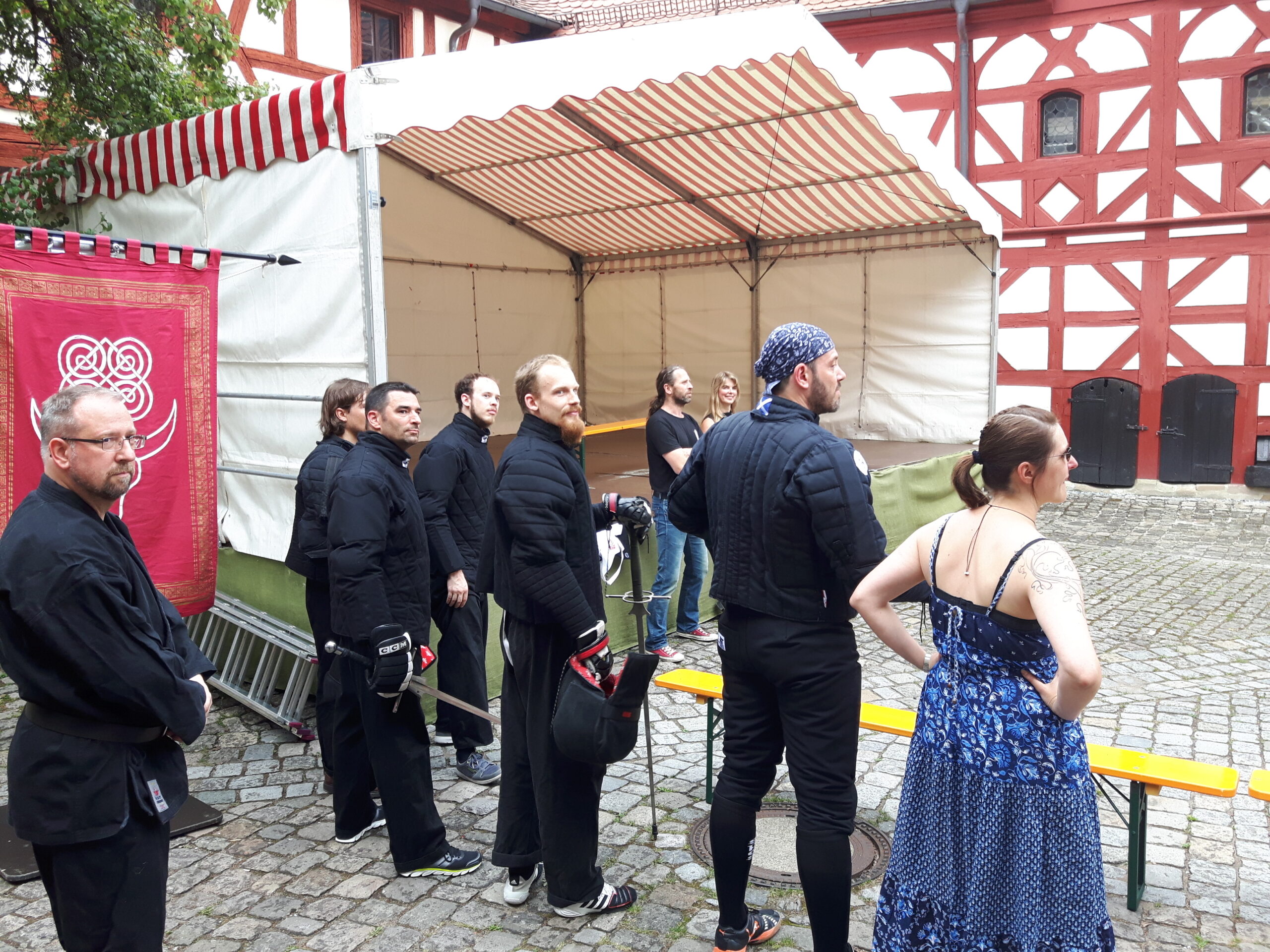 Die Schmiede der Fratres Ferrorum, vor denen wir uns vor 4 Wochen in Schloss Almoshof am Tag des Schwerts verabschiedet hatten, waren auch wieder mit am Start. Und so schloss sich in dem wundreschönen Rahmen in der Laufer Altstadt der ein oder andere Kreis, und wir wurden von Linnels Schwertgeschwistern wieder in der Heimat aufgenommen – einer der emotionaleren Momente von vier Wochen Wahnsinn on wheels.