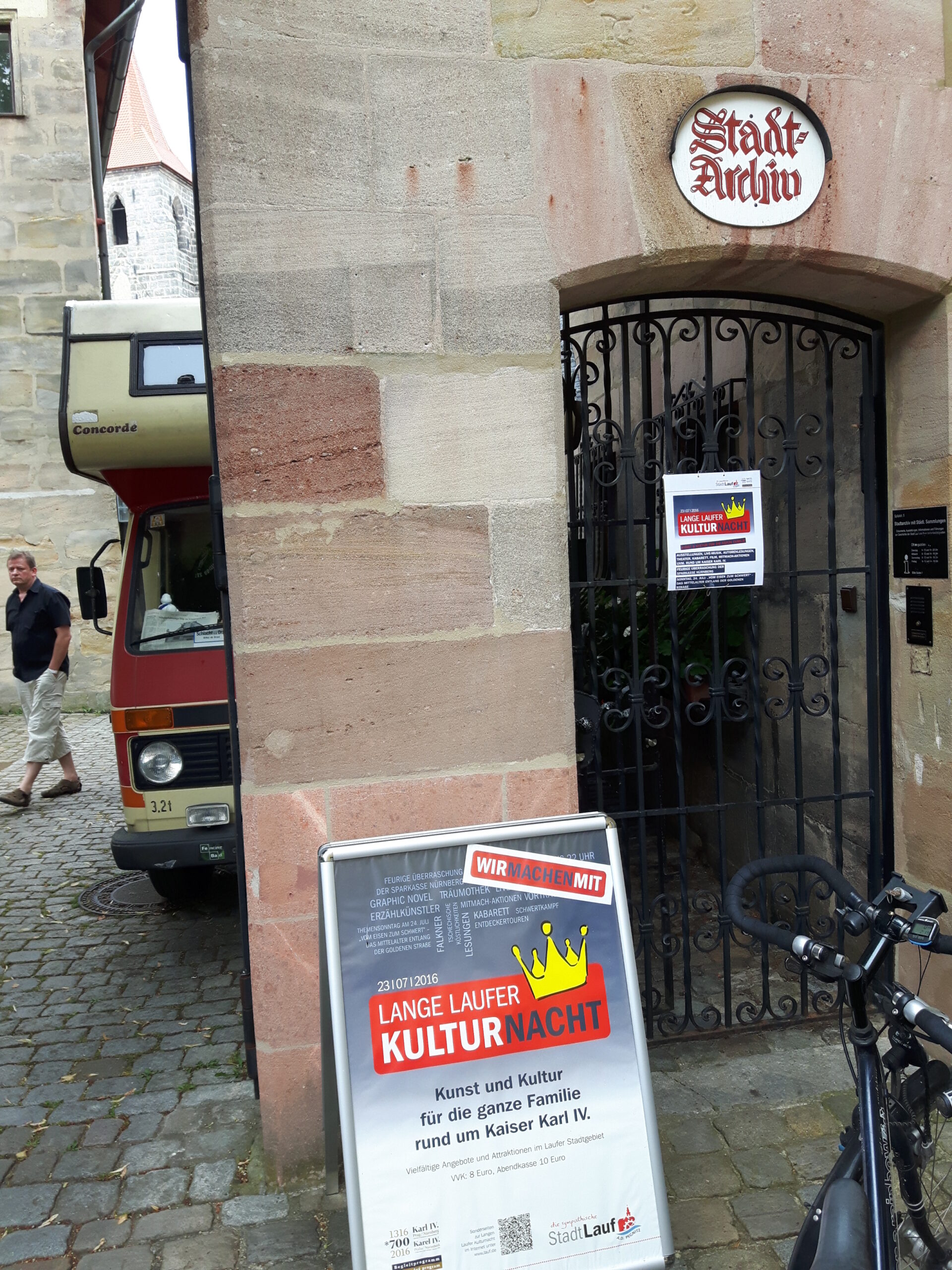 Bereits lange stand im Karlsjahr 2016 fest, dass unsere Freundin Ina Schönwald – selbst aktive Schwertfechterin bei Schwert-und Bogen Nürnberg – anlässlich der Laufer Kulturnacht am 23. und 24. Juli ein Event in ihrer Domäne, dem wundervoll gelegenen Laufer Stadtarchiv im alten Glockengießerspital, ein Event organisieren würde. Schwert-und Bogen präsentierte dort nicht nur Freikämpfe vor Publikum und einen Einstieg ins intuitive Bogenschießen, sondern Schulleiter Andreas Fuchs spannte mit einem Vortrag auch den Bogen zwischen der ausbildung junger Ritter im Mittelalter – und Rückschlüssen daraus auf die moderne Erziehung. Ziemlich spannend. Neben Fototermin mit Mutter und Großmutter 🙂 gab es außerdem Gelegenheit, sich über die Praxis des Richtschwerts zu informieren.
