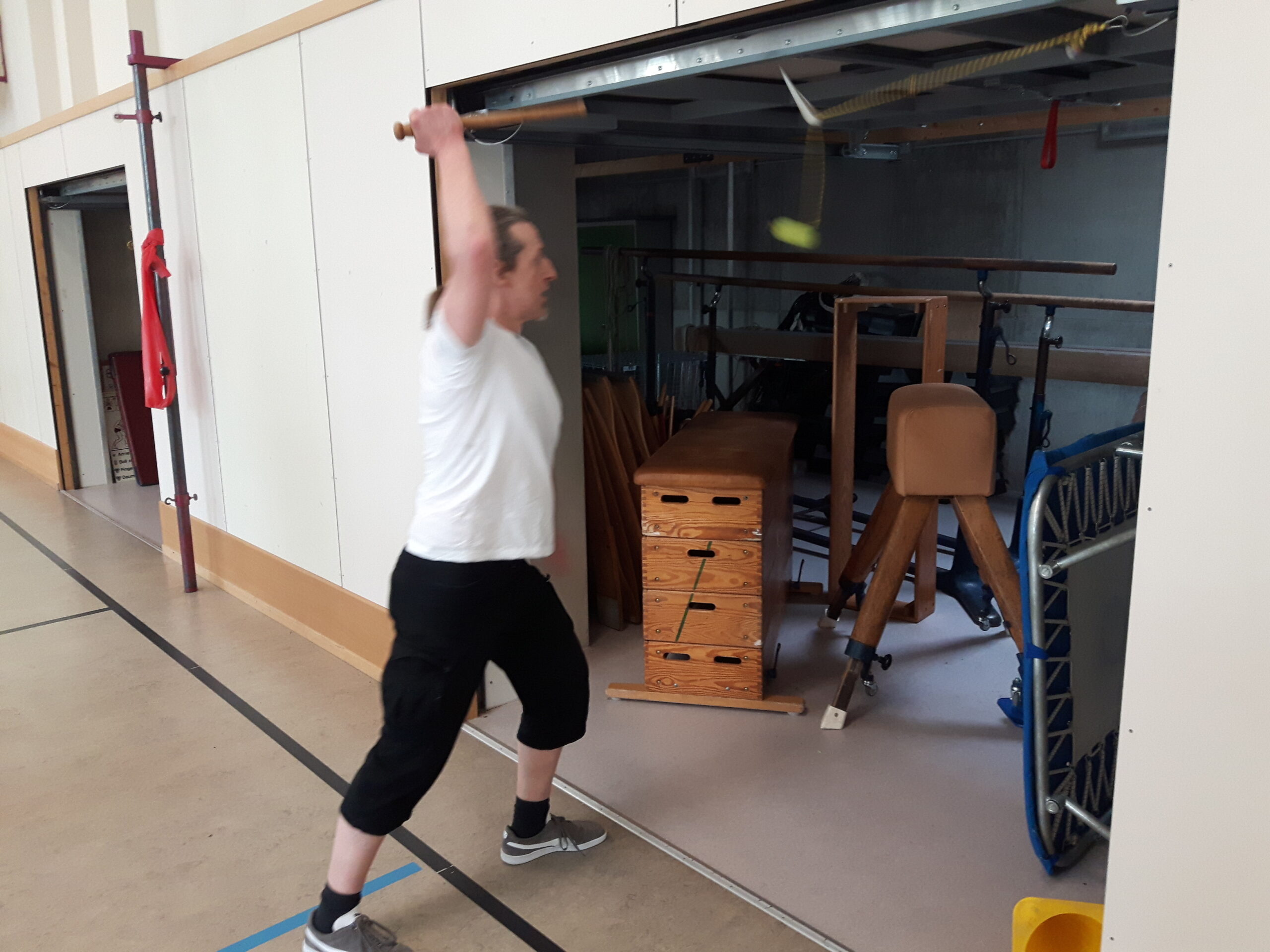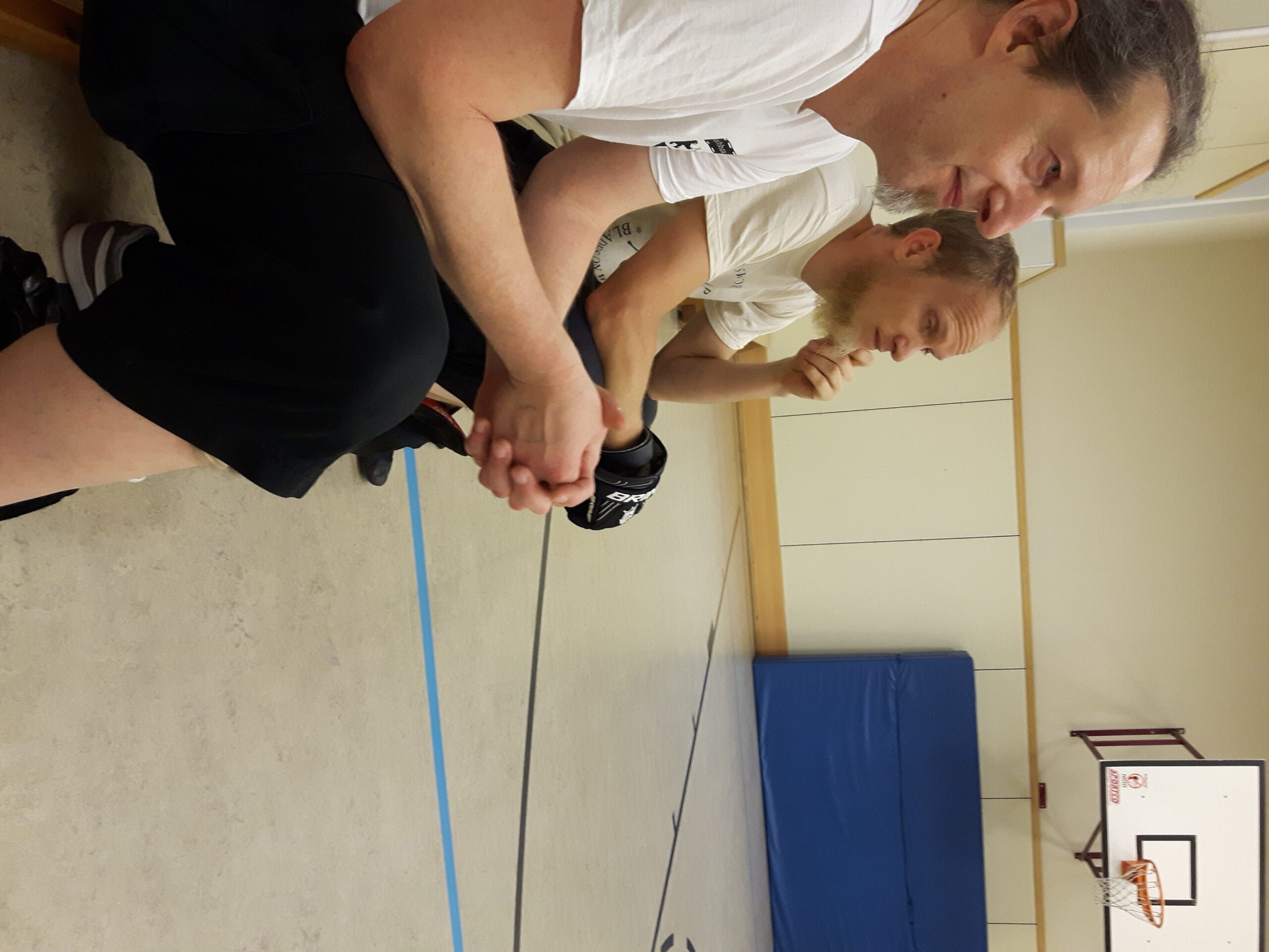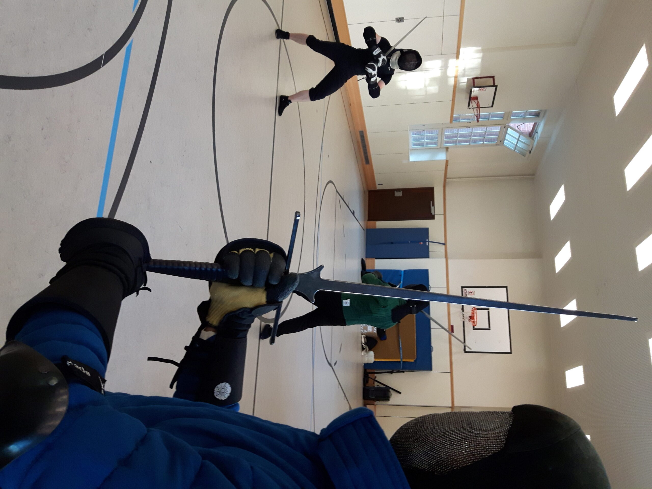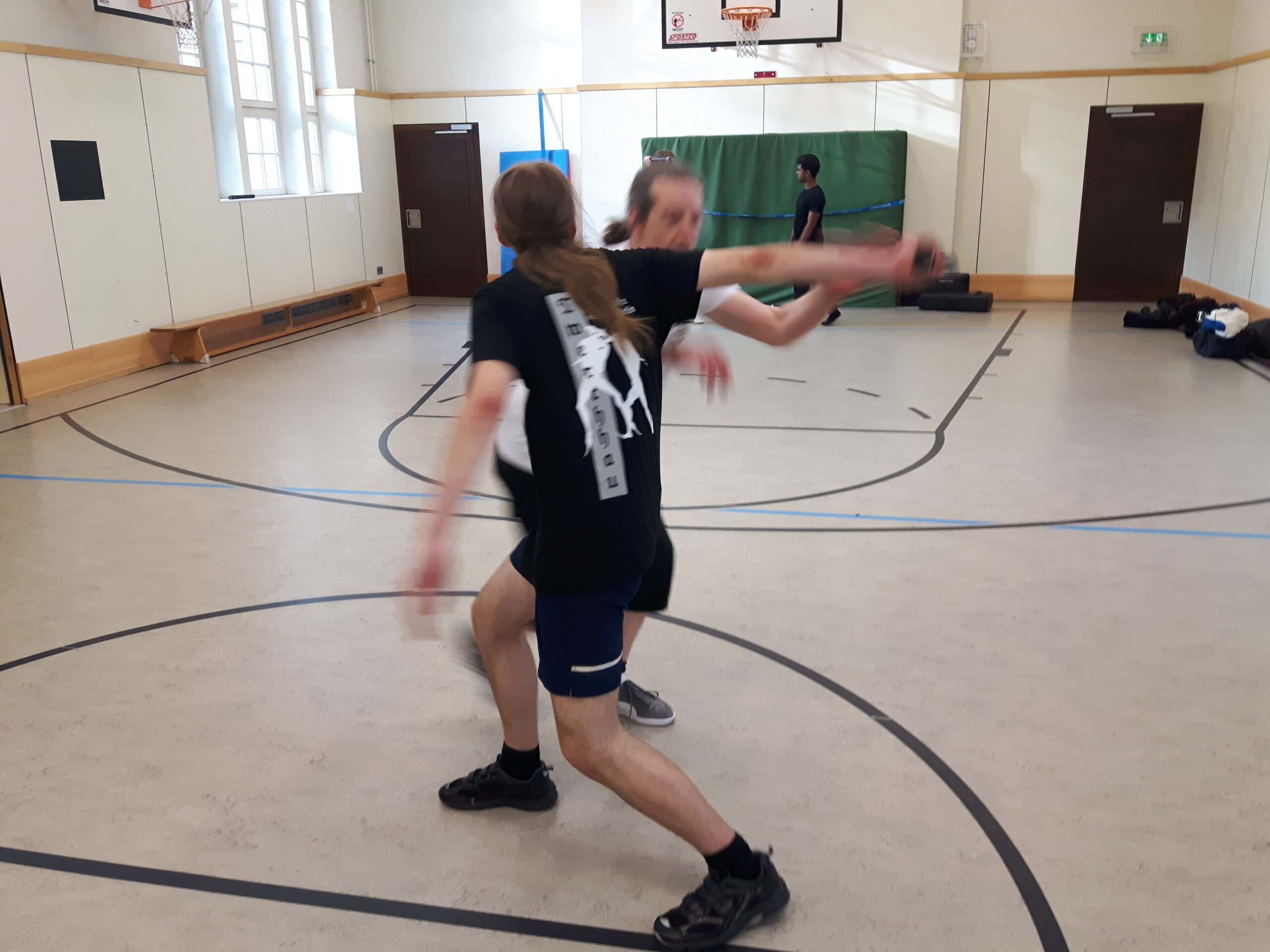 Wer dann noch den Arm heben konnte, bekam als Nachspeise noch eine Einheit Langes Messer serviert – hier relativ grundlegende Techniken: Unterhau gegen Oberhau, Oberhau gegen Oberhau und ein bissel Wecker. Beeindruckend, was Twerchhau auch hier im Sparringsbereich auf die Beine gestellt hat.
